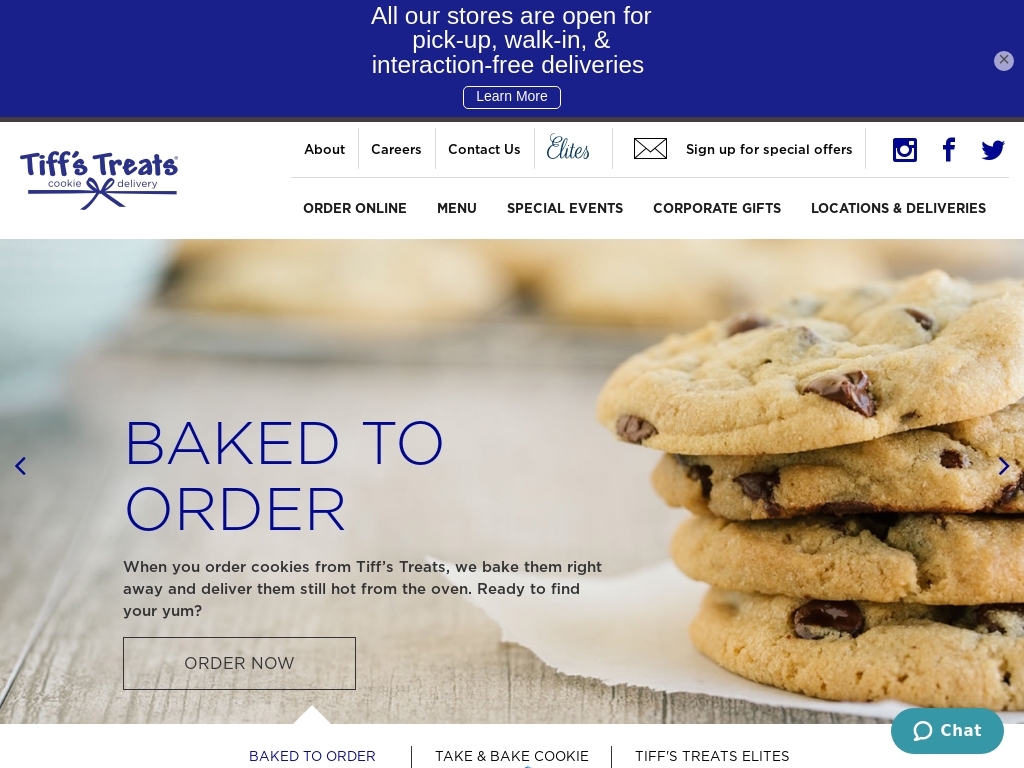 's Treats Cookie Delivery: Warm, Fresh Baked Cookies ... Order online for same day delivery. Tiff's Treats cookies make the sweetest gift! ... Get free deliveries ... Tiff's Treats will donate all sales up to $25,000 to ...