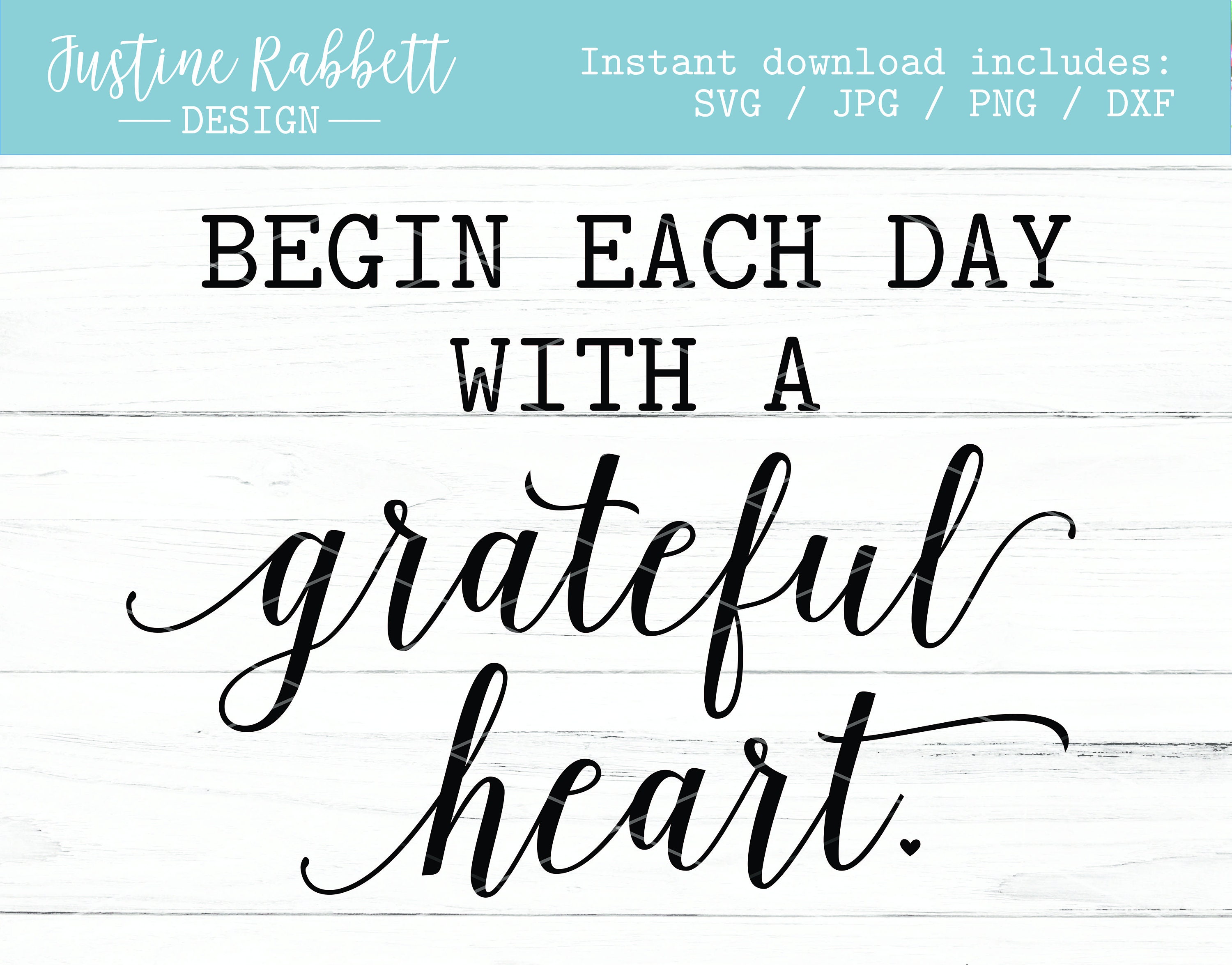 Begin each day with a grateful heart, inspirational wood sign design, farmhouse, cut file, stencil | Digital Download | Jpg, Png, Dxf, Svg